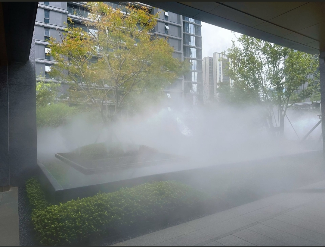 这套系统更是天然的空气净化器。水雾能吸附空气中的尘埃、花粉等污染物,沉降PM2.5颗粒。在雾森环绕的小区,空气质量显著提升,连过敏症状都得到缓解。孩子们在雾气中追逐嬉戏,笑声与鸟鸣交织成最美妙的晨曲。人造雾系统