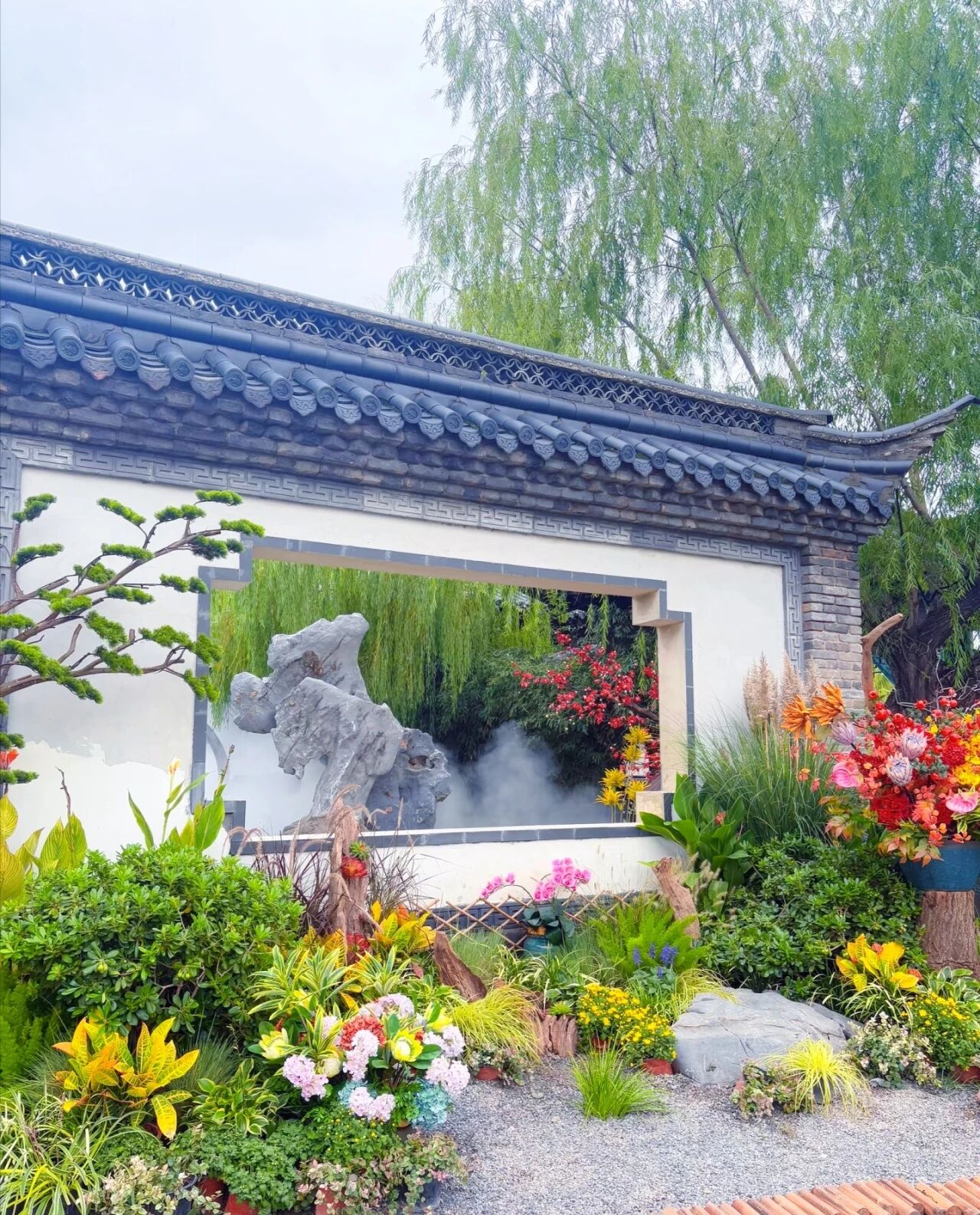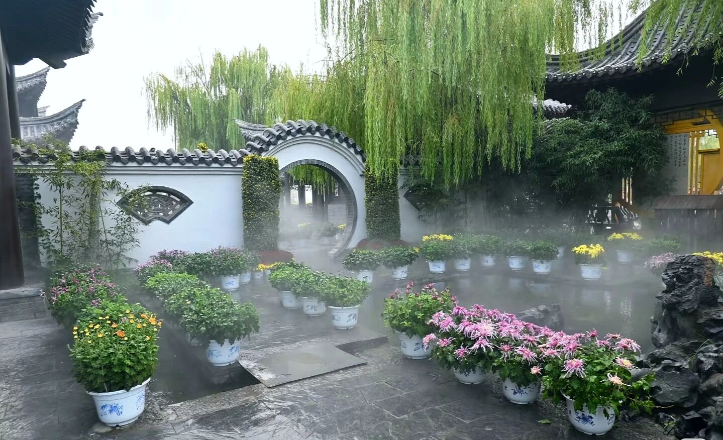 在展览中你可以看到喷出的雾气缭绕 丝丝雾气如梦似幻 给娇嫩的花瓣点上一颗颗 微小的珍珠 从而减少空气中PM2.5和花粉的飘散 如果是高温天气 雾森喷雾能够降低5-8度气温。景区雾森系统